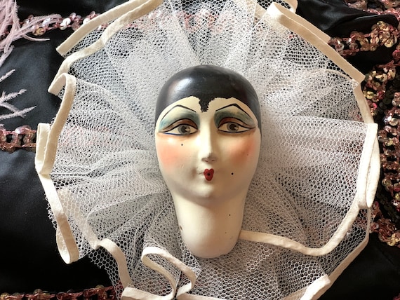 Vintage Pierrot Doll Face Mask Part Boudoir Doll Head Tulle Etsy De
